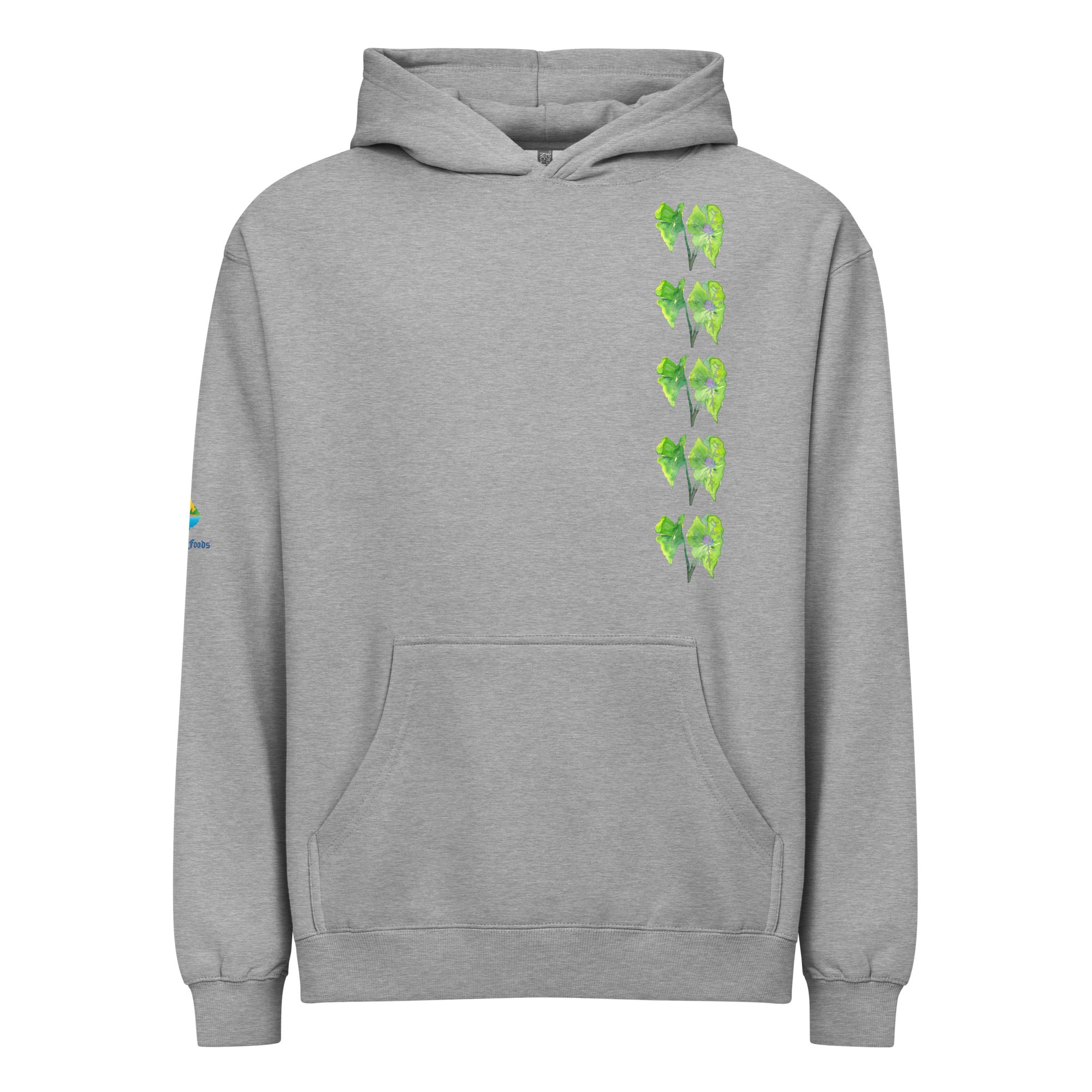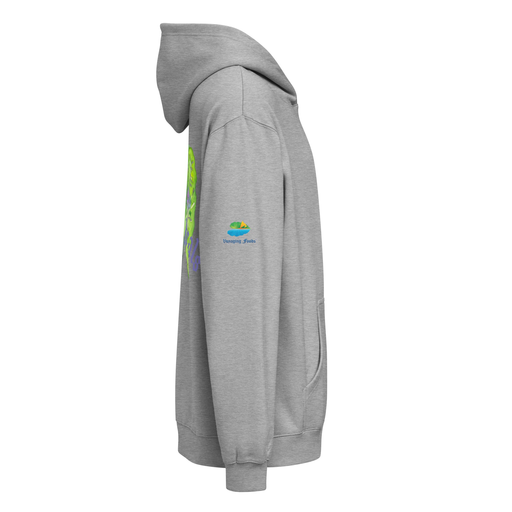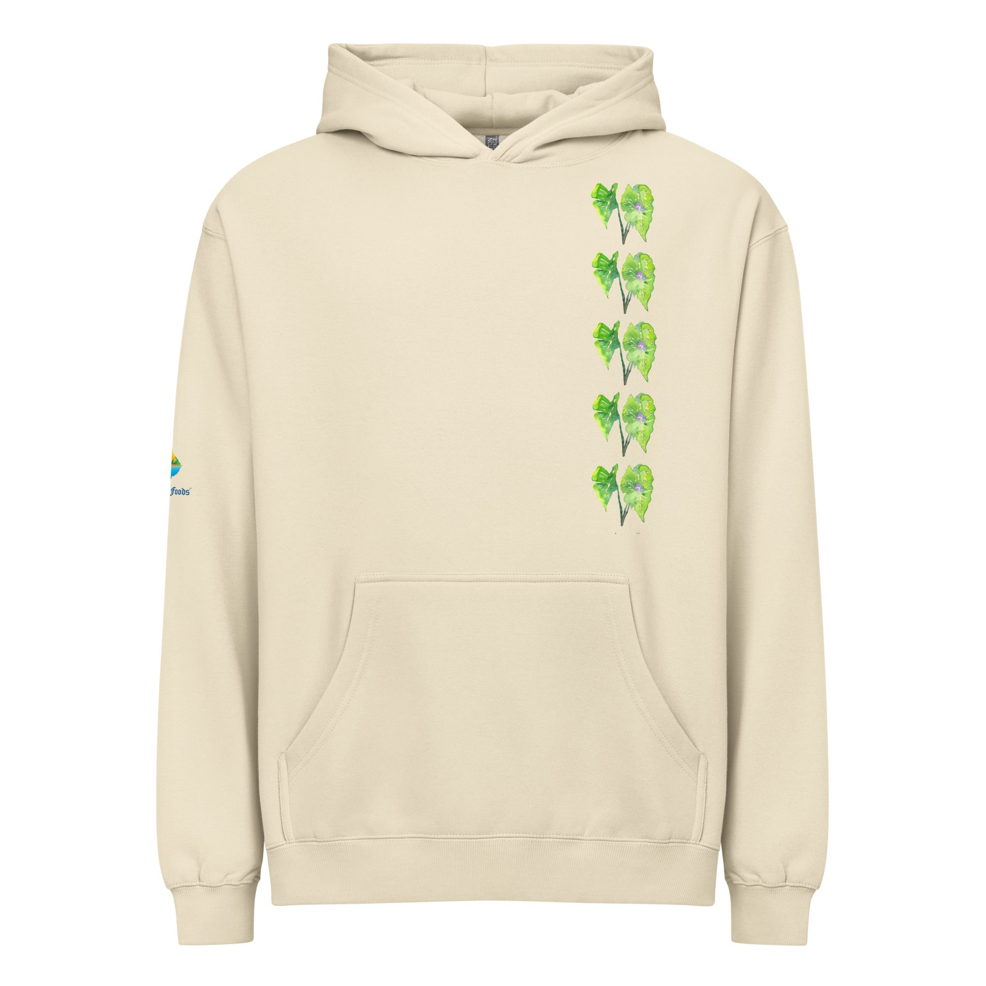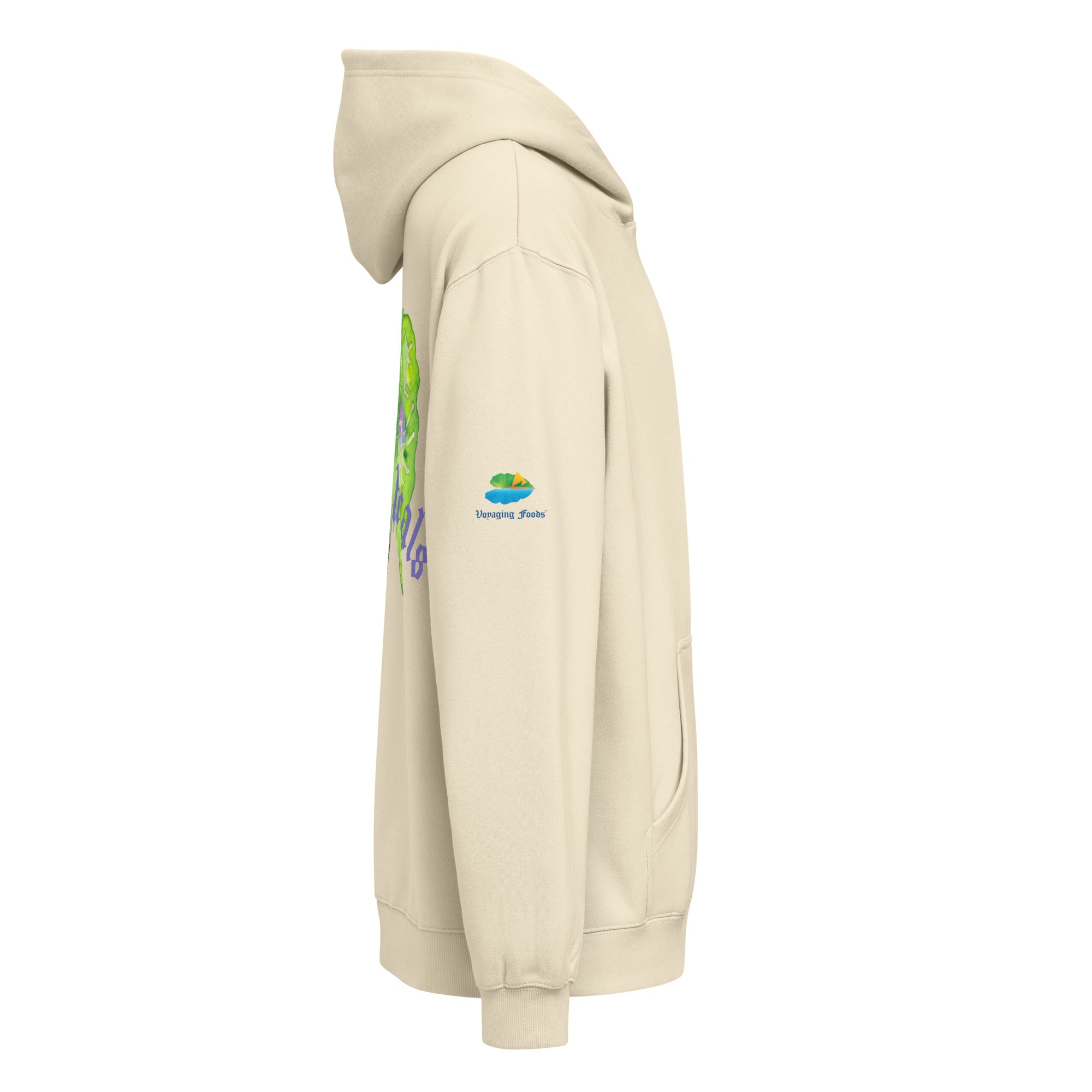 • 60% cotton, 40% polyester • Carbon Grey color is 55% cotton, 45% polyester • 3-end fleece • Fabric weight: 10 oz./yd.² (339 g/m²) • Oversized, relaxed fit • Set-in sleeves • Drop shoulders • Overlapped neckline • 1 × 1 rib at the cuffs and waistband • Double-layered hood in self fabric • Single-jersey neck tape on the inside of the back • Self-fabric half moon on the inside of the back • Blank product sourced from Pakistan